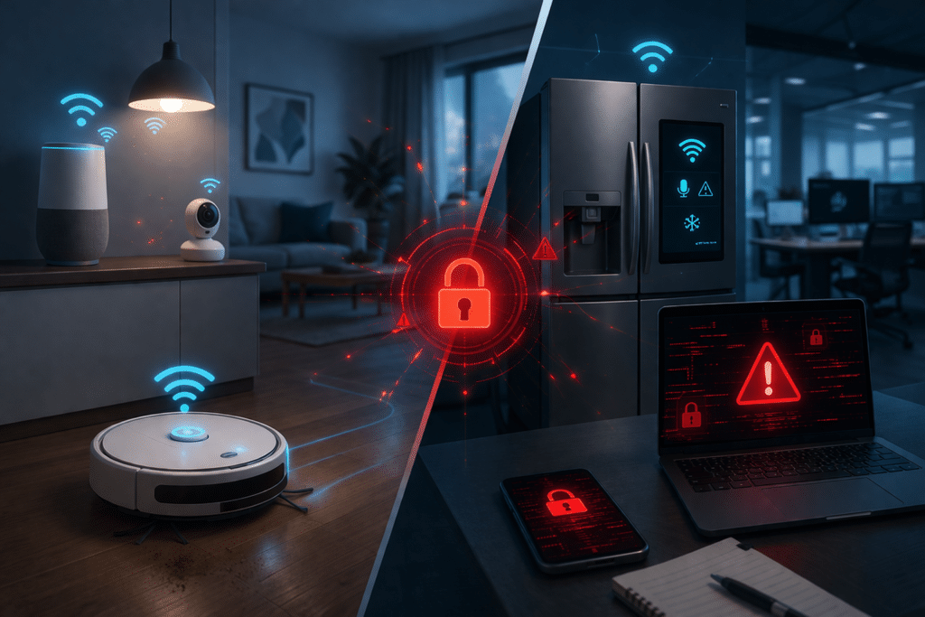 Devices such as robot vacuum cleaners or smart kitchen appliances may appear harmless, but they often contain microphones, cameras or wireless connectivity that can expose sensitive data or network infrastructure.